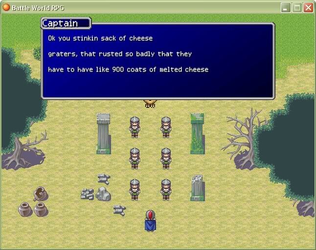 ... The dude mixed rips of this indie beat-em-up game with Final Fantasy, Pokemon, and the RTP graphics, the mapping was horrid and the storyline was idiotic (you were some fighter guy trying to save the biscuit factories from being destroyed. The biscuits also held of highest importance in this world because "they give you stats." That was a direct quote from the game). It was also horribly bugged and was long. I wonder if the author ever finished it.