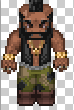 but it isn't him. You could probably edit from that, make him a little smaller and give him the mohawk hair cut and ... when he was on the Conan O'Brien 10th anniversary special, he had a gold 'T' necklace, instead of the usual cross or rings of chains. That would probably work with the costume, right? A big T with serifs at the ends. I don't know what's on the sprite above's arms but Mr. T usually has thick gold bracelets.