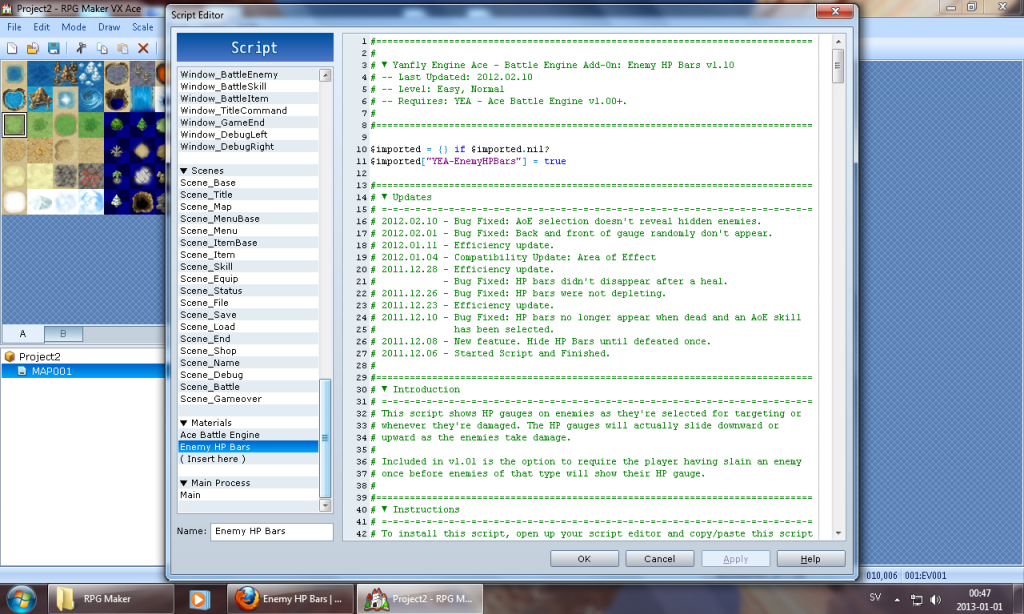 There's the yanfly channel with all his scripts. You can see there is a core engine on top, and then a battle engine script below. And then below the battle scripts section there is an enemy health bar script that uses the battle engine.