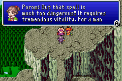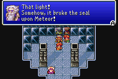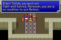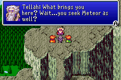 I explain my plight to Tellah, and he tells me about Meteor, the ultimate spell that's apparently sealed on this mountain. He wisely decided to try to learn that before confronting Golbez, which is a wise move, because frankly without it, Tellah would get his shit stomped in. However, the downside is that using Meteor pretty much wastes you.