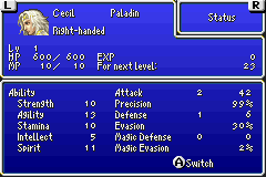 LEVEL ONE!? OH NOES! Actually, Level One Paladin Cecil is still stronger than Level Twenty Dark Knight Cecil! Crazy, no? Time to go back towards Mysidia.
