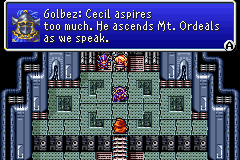 Meanwhile, back on Mt. Ordeals...it's pretty rough, actually. There really aren't any treasures that are too useful, and the enemies are difficult and numerous. Due to Cecil's Dark Sword, I don't really do jack squat to any of them, and I'm almost totally dependent on Palom to do any damage.