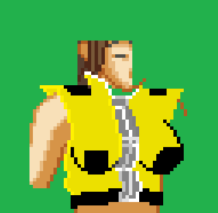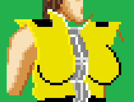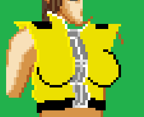 Looking a lot better now yes? Breasts were fixed up, same with pockets. Zipper was touched up, and slimmed down the center of the vest. In addition, tried to fix up the black...patches...things...on the shoulders, and struggling trying to get the top part of the zipper done. How do you do ovals/circles in pixel format!? >_<