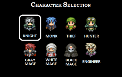 Unlike many games, Last Dream II allows the player to choose their party from a myriad of character classes. Last Dream I featured 8 unique character classes (Knight, Monk, Thief, Hunter, Engineer, White Mage, Black Mage, and Gray Mage) and Last Dream II adds 4 new unique classes: Summoner, Berserker, Time Mage, and Lore Master. Furthermore, each character class can be leveled up as the player sees fit through an ability-point system. Some key additions to the Last Dream I system are overdrive skills, dual skills (combining two unique character classes), dual class upgrades for each character class, and an upgraded synthesis system featuring socketed equipment. Whereas Last Dream I featured a turn-based battle system, Last Dream II will transition to a more dynamic active-time battle system.