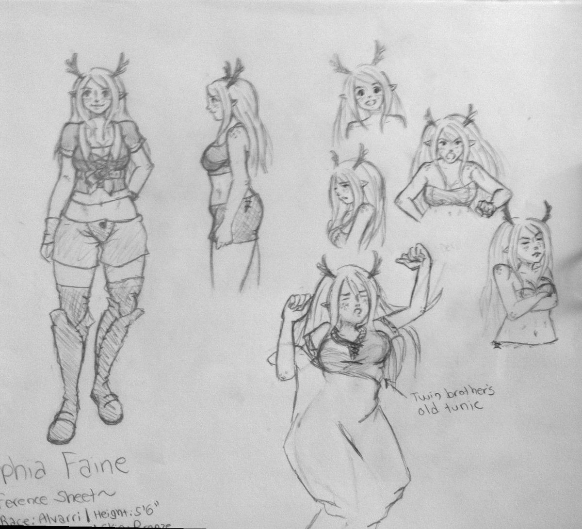 Created a reference sheet for my character Sylphia. I kind of realize now that having free-flowing long hair isn't a good idea when you want to be a fighter...