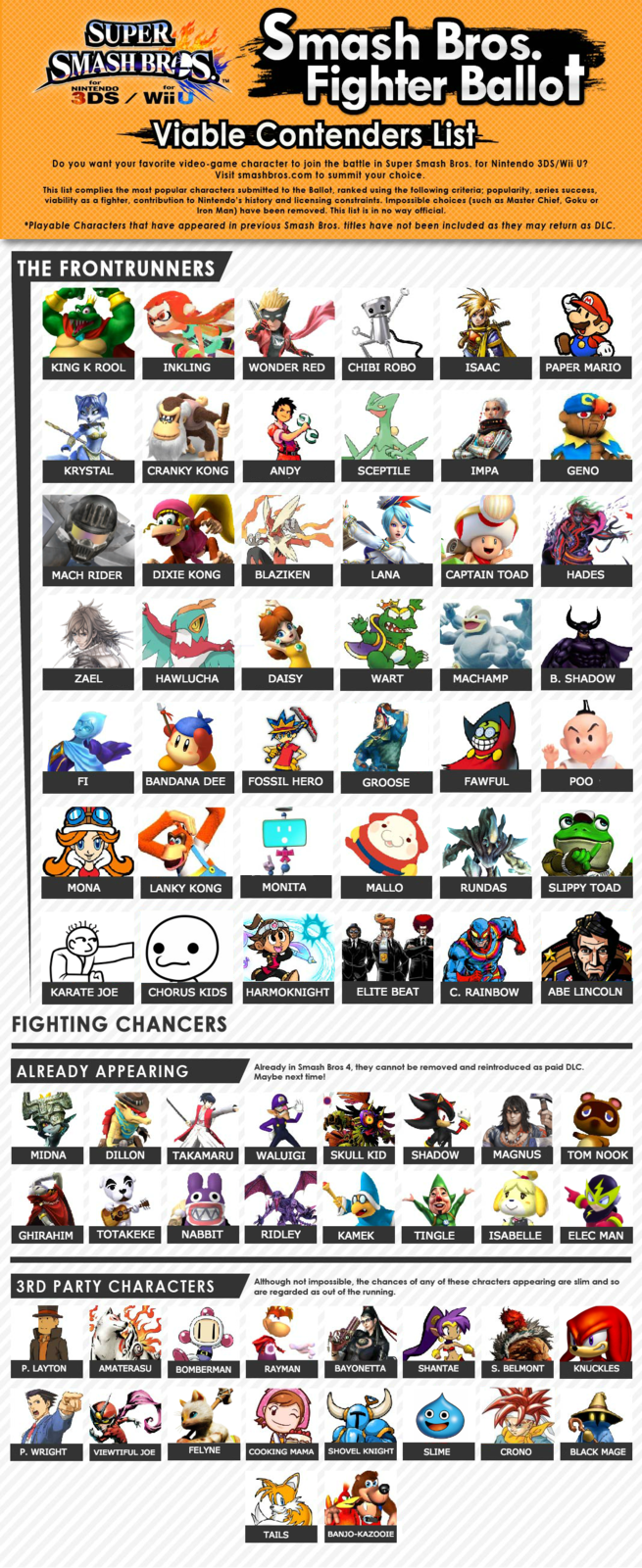 But eh, characters already in the game as an assist trophy or whatever have no chance of getting an upgrade? Well, so much for my Saki vote! (and before anyone complains about more sword users, ITS A LASER BATON TOTALLY DIFFERENT GAIZ)