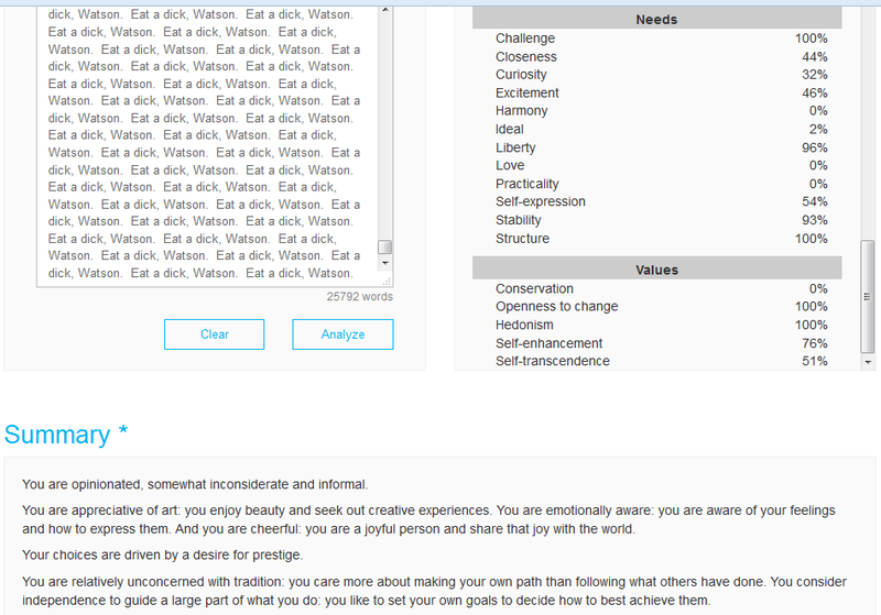 Watson thinks I don't care about art. I think. The problem with this thing is that Watson spits out vague traits that only Watson understands, and it is humans that named those traits and decided how they are described in the summary.