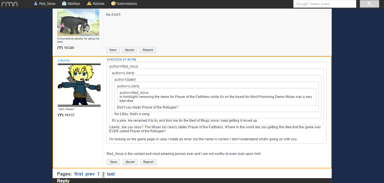 In hindsight, removing the demo for Prayer of the Faithless while it's on the board for Most Promising Demo Misao was a very bad idea.