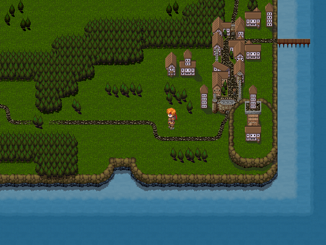I'll probably stick a monster or two in there later. As you can see, no custom graphics for the characters yet... so far, everything except that world map chipset you're looking at is RTP.