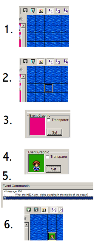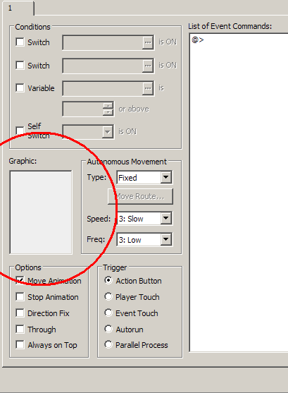 It's virtually the exact same procedure. The only difference is that you double click on the white box labeled 'Graphic' as opposed to clicking on the 'set' box in RM2K/3.