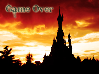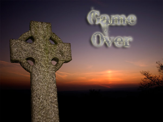 Ummm... maybe a bit of hill over the end of the tombstone, and make the tombstone face the sunset? Also, ...that's a cross. There is no church in the town of Tombstone. No game over text, please.