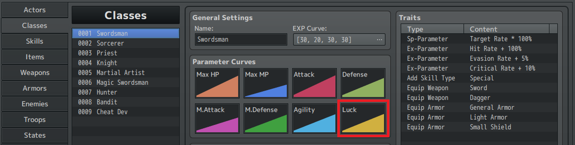 Last question on this subject: The luck points attributed by items or events are added to the "actor.luk" variable. Or this variable is only parameterized by the Luck parameter curve ?