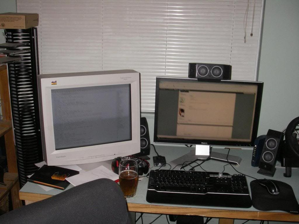 I'd post a picture but I have no camera at the moment. and the four different desks in this room deserve a proper picture, that's for sure.