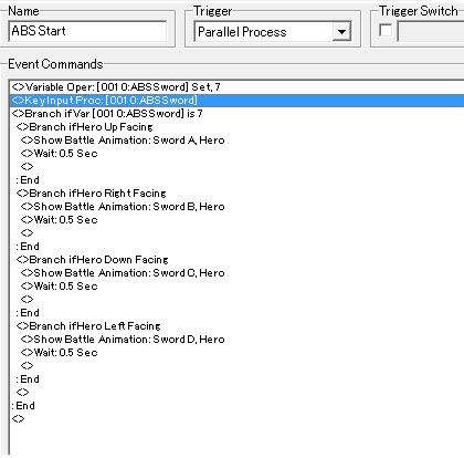 Nope, look again, this code is just for attacking. And since it's a PP event in a CE, the hero will continue moving even while attacking, (which probably won't look good, you need to stop the hero while the "slash" is in effect, but that's another story).