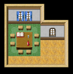 Also, try to consider that the player sprite should be the size of a real human. Think about those sofas and that "coffee table". You could fit 8 people on that thing, so it's definitely more of a conference table if anything, which wouldn't have sofas around it seating-wise.