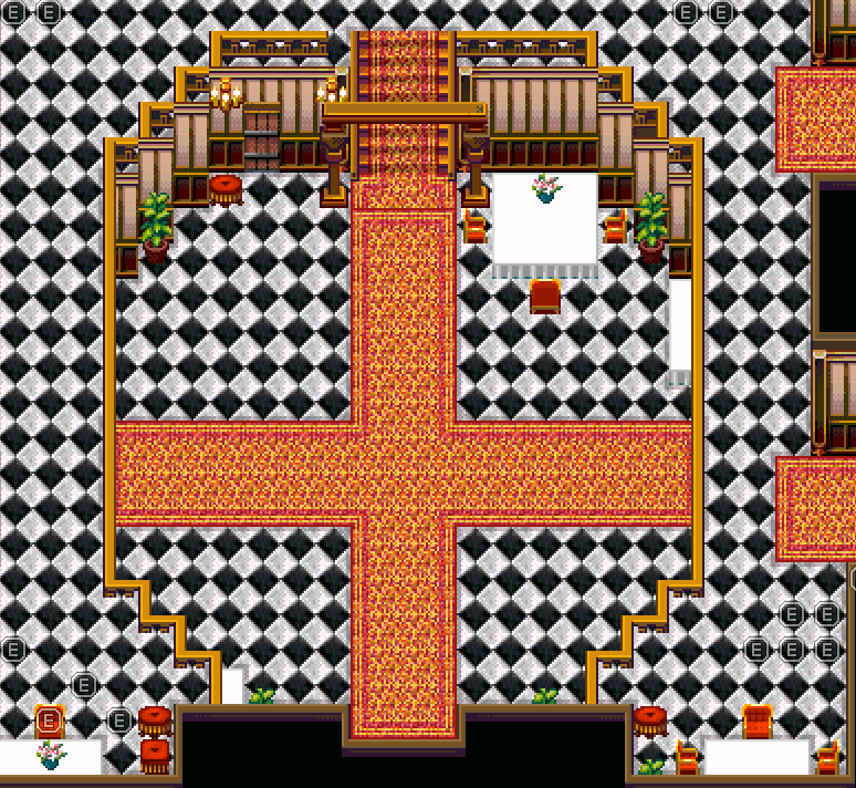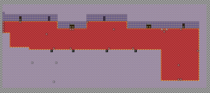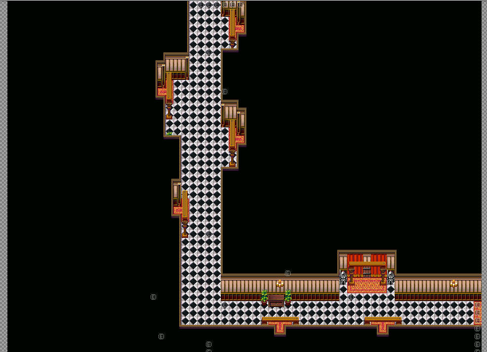 EDIT - So, looked at the map in-game (after resizing the map down and fixing all of the bloody events. Still have to place events on the map, but that'll be after I fix up the rest of the mansion. Btw, the map size now is 39x33. I chopped out all of the unneeded extra space and that's how much was left, with about one tile off to each side for the black area), and it looks fantastic. I still don't think it's that big myself but...in any case, since I have this map done (and probably will once again expand the hallways to 3 tiles instead of 2), this is something that I AM going to ask for advice on, since I could never get these to look right ever: Hallways. I need to figure out what to do with the hallways themselves (the rooms will have exits to them of course, but hallways!). For those curious, this...is what the original hallways looked like: