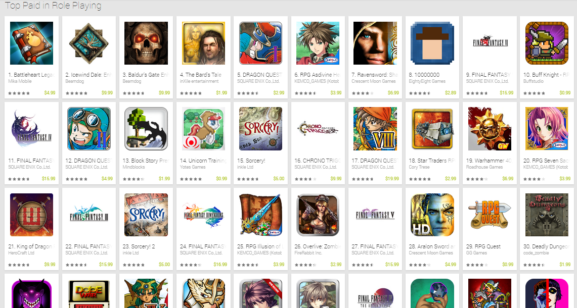 I don't think I ever experienced chills like the ones I got when I woke up Sunday morning and opened Google Play to find my ranking data when checking the RPGs section of the store. Number 14 in top paid RPGs (now sitting at 12), number 2 in top new RPGs, the demo reached number 36 in top free RPGs, and both games listed as numbers 3 and 4 in what's trending (for RPGs). That's when I realized my goal of at least 200 downloads wasn't unrealistic.