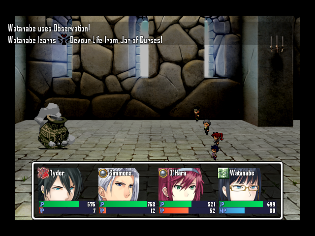 Watanabe can learn some very powerful skills by using Analyze on the right enemies. There are two categories of skills she can pick up using analyze, Sorcery, and Enemy Skill, but that distinction won't matter much until later episodes, where Sorcery will become an option for several characters but Enemy Skills will be unique among PCs to her.