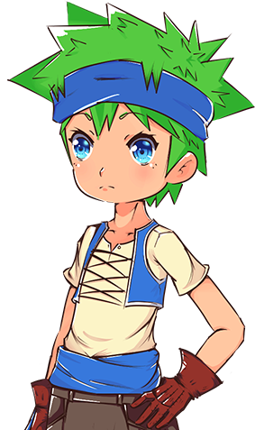 Son of a famous mercenary, energetic boy from Raffident. He has strong physical ability but, he has a problem when it comes to cognitive ability. With his strength, he wants to protect everyone's smile, especially Luna.