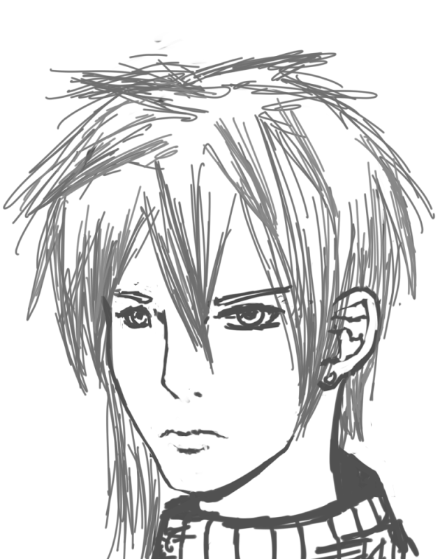 This is where I gave up. I do a preliminary grey sketch before moving onto brown and using the crayon/pen tools to create a lineart like FF8's. I'm not satisfied with his facial features, and since this was so frustrating, I'll just be redrawing Levi. Again.