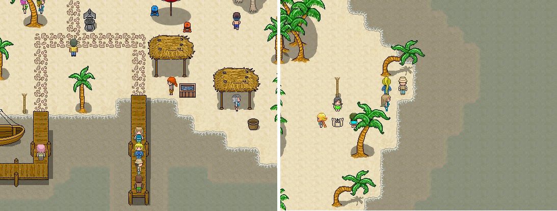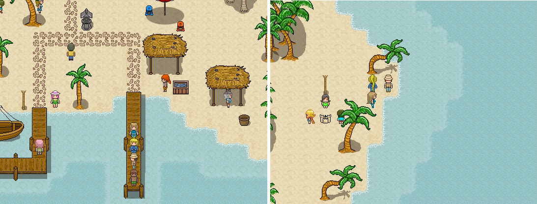 Just kidding really. A bit of update on the progress. Me and wltr3565 are working hard trying to make the battle scene background more pretty and lively, instead of just boring, static landscape image. And this is what we've come up with! A beach scene with animated bits, the distant cloud and the ocean waves. We jokingly said that might as well make a beach scenery simulator game for all this effort just for a battle scene background in a tiny piece of map. Now what's left to do is trying to make the trees animated too, and maybe the shining stars at night. Check the video sneak peek here: