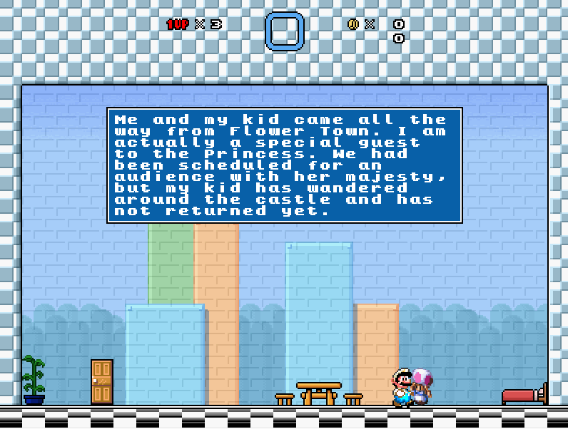 Super Mario Quest is a side scrolling RPG-adventure fantasy game that runs on SMBX (Super Mario Bros. X) engine developed by Redigit. It spans 16 worlds full of adventure and story.