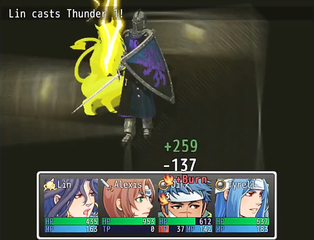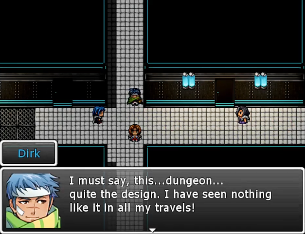 Visually the game uses some RTP sounds while music is original, from Rayspark Industries and Scott Vallance. The graphics use a sci-fi asset package already seen in few other games plus some default charsets and facesets, but the battlers that represent the enemies are instead from a high fantasy pack and have a realistic style that contrast with the anime pixel-art and chibi charsets. Anyway nothing really bad here, mapping is also pretty much ok.