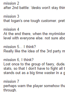 Other than sending me feedback on a per-mission basis, there wouldn't be any real responsibilities associated with this position. You don't have to send a PM/email per-mission, mind, just break down feedback per mission like so.