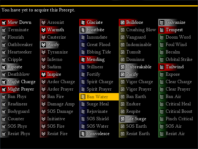 With the assistance of Myla, a personality relevant to the events in the Polis, you can exchange prayer tablets--the basic component of an artificial Precept--to enhance the potency of a spell or shift it towards disciplines of magic outside of its original intent. By folding the stored Essence of the "wrong" tablet into a Precept, you can create a skill that borrows some of its power from that same "wrong" Essence.