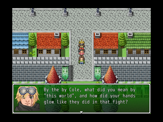 I do have a huge misspelling error problem, whether I hit the wrong key or just don't know how to spell, I'll check it all at a later date. I do plan to make the world more big and explore-able, but that will be secondary. Cole doesn't get surprised to things he's used to ,*wink*, and it is a serious game, but also not a serious game, the theme of the game basically is that "things are what they are, and what they're not", kinda like what's mentioned in the intro. I'm trying my best to have serious story elements there, and funny enjoyable moments in the game, it's a challenge but a fun one. I had a hard time with the battle system making a balance and it's good to see that I'm doing alright. The custom characters I made are PLANED to get in the game, Zage is in the next town(it's a city) and Navillus will be relevant in one of the plot points. P.S. tea sucks P.S.S. are you able to get the the next area, or did you just stop?