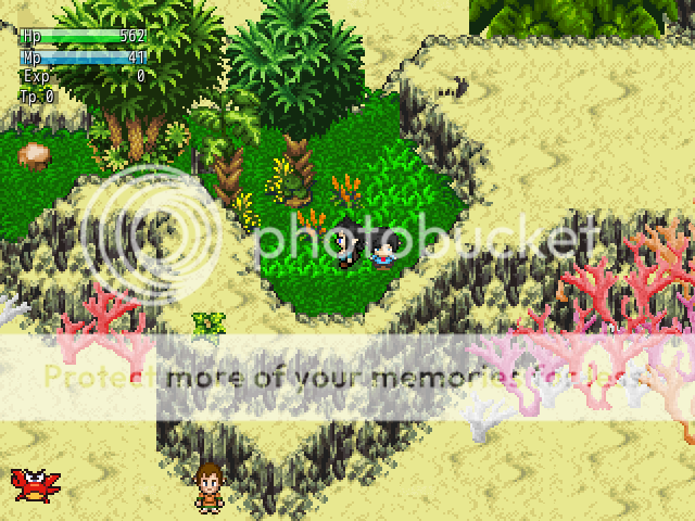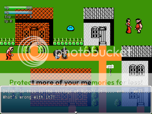 There are certainly some issues. I'm still trying to wrap my mind around this combat system, and as such, it's not perfect. Even though Blake telepathically swings his sword in a fairly wide arc, the hits only seem to connect when the enemy is directly in front of you. There is actually a LOT more to the combat system than I've actually put to use in the demo... you can train animals, use bombs, boomerangs, a hookshot, etc. There are hints of some of this in the demo, but for the most part, the most complex thing you have to worry about is swinging your sword. And if you take Dylan with you (which I HIGHLY recommend), he will likely learn a heal spell. You can cast it just fine by via the the main menu by pushing ESCAPE, but there are a whole host of other menus you can access by pushing N or M. I don't really explain them in the demo, but if you make Dylan the party leader, he can cast Cure on the map screen. He can't fight, though, so... yeah, it's not an ideal situation. I'm working on that.
