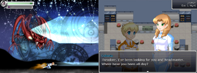 You play as Celeste, a sky night, whose been tasked by her boss to investigate a school and get to the bottom of recent monster activity. Unfortunately the game really doesn't make a lot of aspects of the narrative beyond this basic premise particularly clear. Like why do the monsters attack our dimension, why are people studying at school run by a group that likes to perform cruel human experiments, and why is all of the important information about this world seemingly locked away.