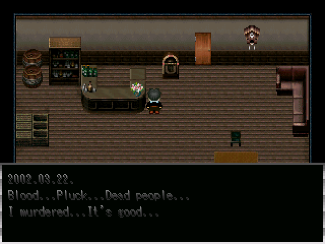 I was excited to play this game because I obviously like the psychological horror genre and I have a soft spot for theodore horror games made in RPG Maker 2003. The foreign ones, especially, are pretty awesome. I turned down the lights, turned up the volume, and prepared to be scared out of my wits and hoping to be made jealous at someone else's ingenuity and be inspired to work on Backstage 2.