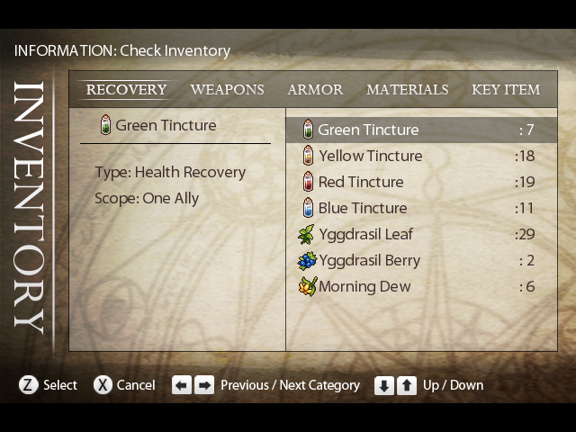 (And looks like you finished the game with more items than I did; I was basically on life support and got lucky towards the end of the game that I had so few recovery based items. Maybe I just suck...???) X_x