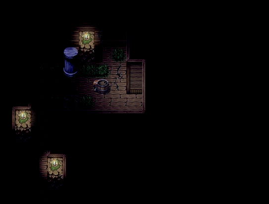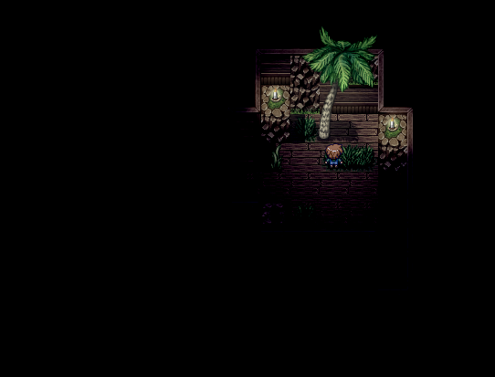 I'll start with the aesthetics of the game as that was the first thing I noticed. A lot of the resources are from Celianna or the DS pack and have been used.. interestingly. The exterior map is rather nice to look at, but the interiors get a bit funky at times with weird trees sprouting everywhere, carpets that follow you around the room creepily, maps which join together in ways that make you question what the hell sadist architect would build a place like this..