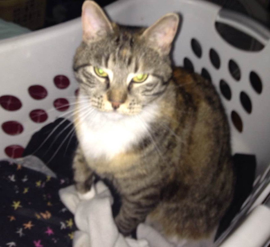 a cat (Clarabelle), 4 parakeets (Stinker,