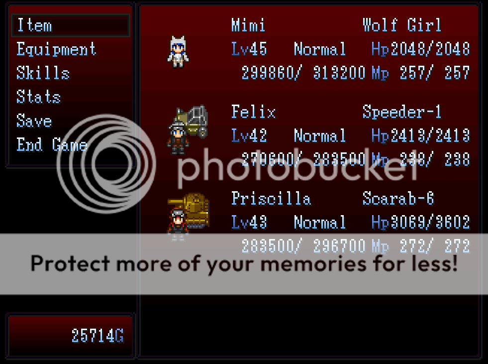 I put a hell of a lot of time into drawing and editing sprites because I love the oldschool side-view system. I'm at around 1000+ battle animations at this point. I don't think I'd be able to make the switch to MV however. It was a nightmare switching to 2k3 when I grew the balls to start doing battle sprites.