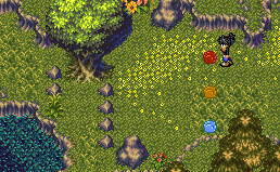 Earlier on in the development of the game I did try to create my own tiles, appearing closer to what you'd see in the anime. I scrapped it mostly because I didn't have the time to create all of the tiles in the game, and I wanted to focus more on creating actual gameplay. Also, I'm not that good at it and I wanted to keep the graphics on a pretty high level, so finding rips and editing them was the obvious choice.