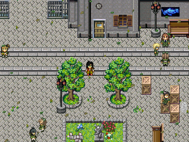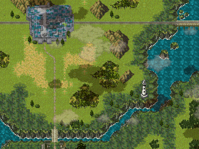 Screens will do the talking here, but what comes to the graphics generally, all the chipsets are compiled to fit the general look of the game (which I don't really know the influence of), sprites usually pretty much edits and the main characters usually totally custom or at least customized to be very unique. I also put way too much effort on lots of animated sprites and poses, so look forward to them.