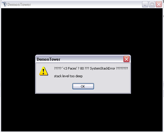Craze, I begun playing RSD games with Demon tower but I didn't get very far because when talking to the first monster thingie when heading to left in the second floor, I got this error: