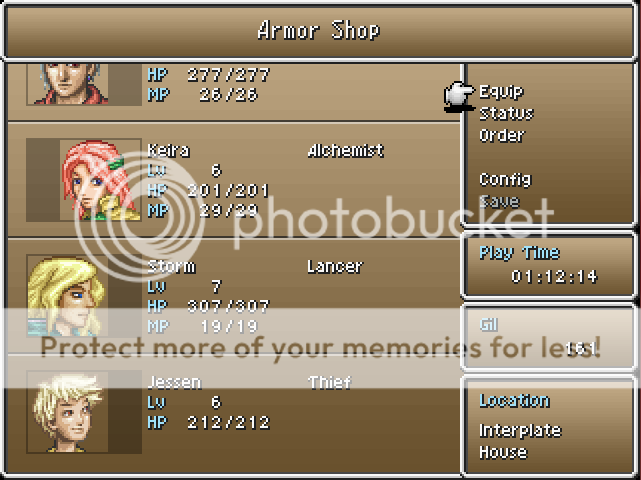 In the armor and the weapon shops and possibly the item shops, when you try to get into your menu, the picture doesn't go away so it cuts off the top of your menu.