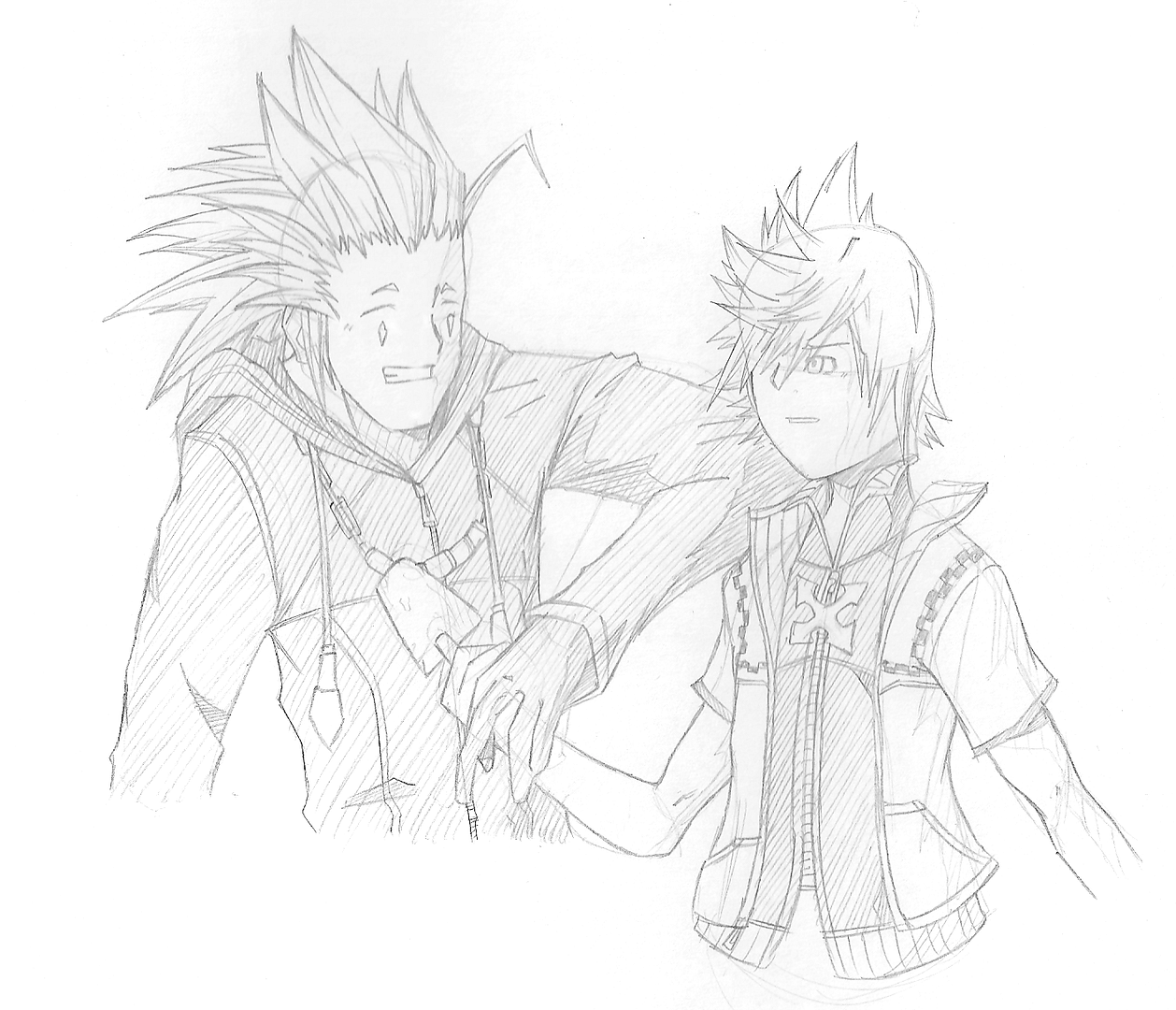 My girlfriend asked me to do her a sketch of Roxas and Axel. Here's the result