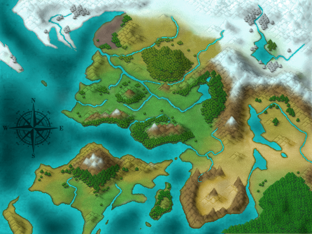 Actually, I focused more on what Earth regions these places would emulate. You can clearly see Northern France / Southern England in the lush, river-y grasslands. The mountainous region to the SE is very much like Persia. And the snowy plateau in the NE definitely has a Scandinavian feel to it. And there is a tiny island between the main continent and the smaller "Britain" continent where a large, London-inspired Steampunk city lies.