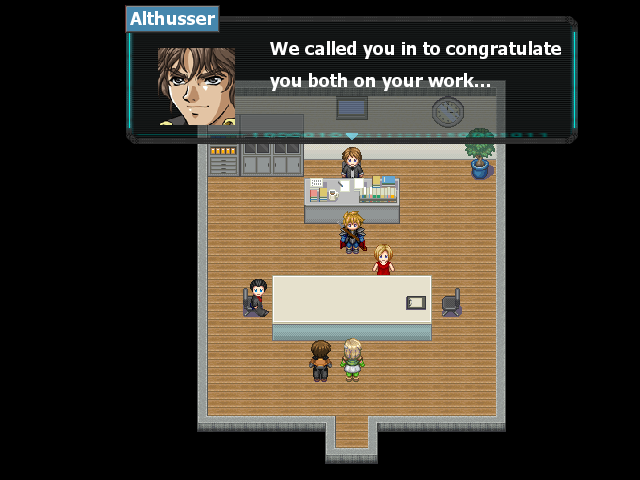Swords you say. Combat Specialists have weapons no doubt. I guess it is kind of weird but the swordsman is Althusser's Guard and Rank Number 2. The woman in Red is Menethil's Secretary and can rival the strongest of Combat Specialists physically. She's does missions for him. In the scene you actually see them engage conflict because they both have different ideas in politics. ("Also in order to obtain information from both parties, both guards slept with each other and were briefly intimate so there is conflict there too...")