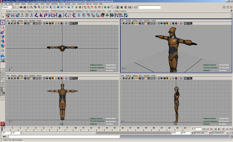 Sorry, been hectic lately. here's some more angled shots of the bot for you Max. Ratty, yeah, arms seem a little short, trying to decide if it's because I put the crotch too low or made the body too long (common mistake of mine) or if it really is just the arms. At any rate it's being looked at.